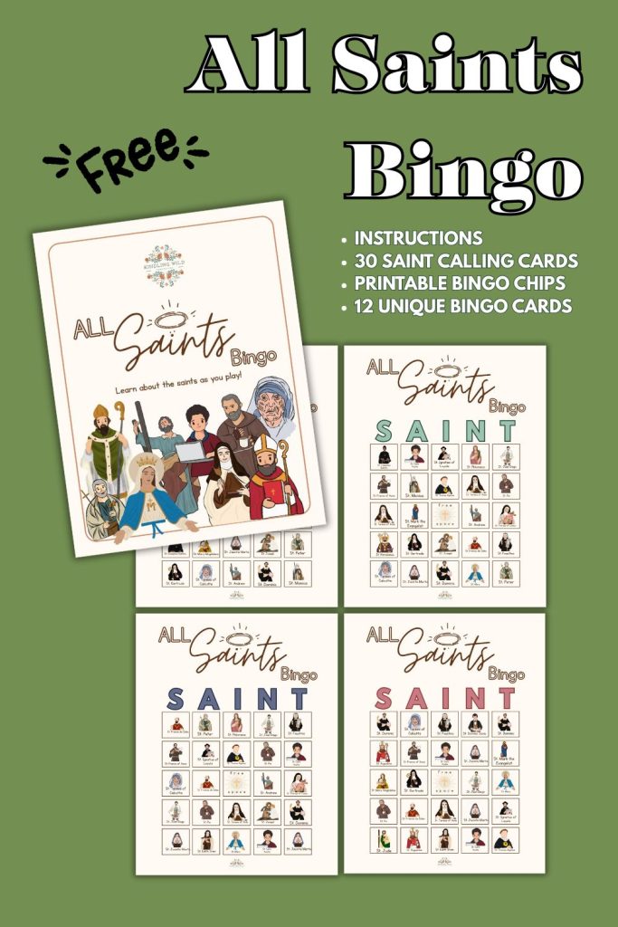 You can play it just like regular bingo, but instead of numbers, you’ll call out saints. Each time a name is called, take a moment to share a fun fact or story about that saint. It’s amazing how much children remember when learning through play!