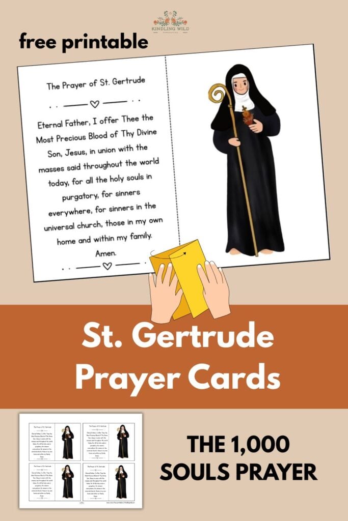 If you’re looking for a simple, beautiful way to bring the spirit of St. Gertrude the Great’s devotion to praying for the souls in purgatory into your family’s prayer life, these printable prayer cards are a perfect tool.