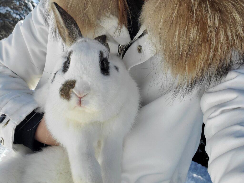 In winter time, rabbits tend to be just fine. We get extreme winters here in Northern Ontario, but the breeds we have kept have been completely hardy for winter in their cozy rabbit furs. It is essential to shield cages from wind (yet allow for ventilation) and to ensure waters don’t freeze. We kept extra waterers and changed them out regularly. If you are kindling in winter, be sure to provide extra bedding in the nest box, and be aware that while mom typically keeps kits cozy in there, sometimes nature happens and more kits may die from cold exposure.